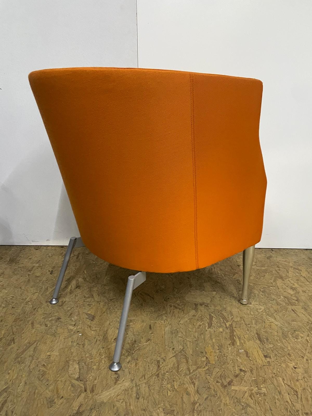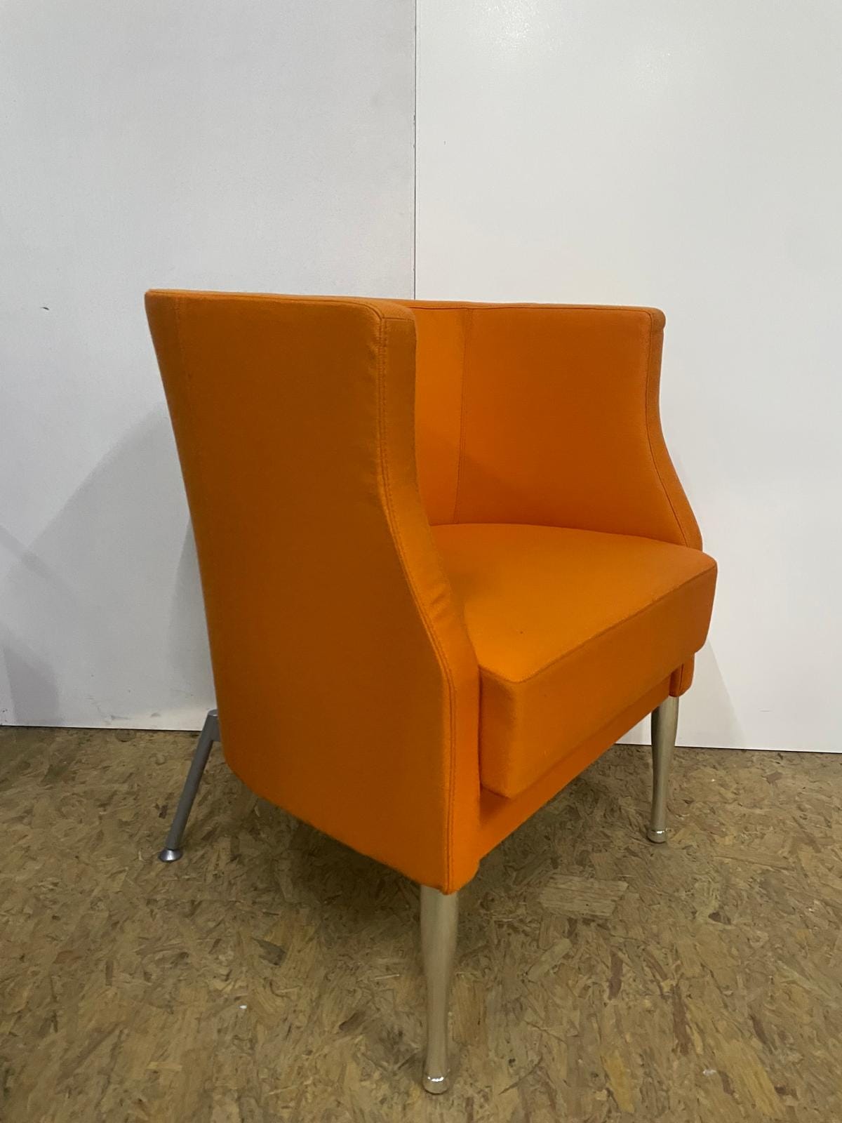 Orange fabric tub chair by Kinnarps with 4 metal feet.